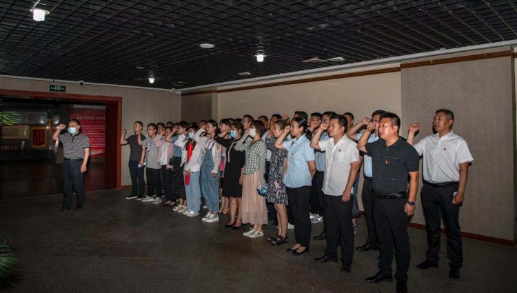 為慶祝中國共產(chǎn)黨成立100周年,傳承紅色基因,汲取革命力量。6月30日下午,中心湖帶黨總支在黨總支書記林曉海同志的帶領(lǐng)下前往淮北市博物館­——建黨百年 淮北足跡,慶祝中國共產(chǎn)黨成立100周年主題展,開展“學(xué)黨史 守初心 踐使命”主題黨日活動,林曉海同志組織舉行新黨員入黨宣誓儀式,結(jié)合過“政治生日”開展黨員重溫入黨誓詞活動,進(jìn)一步激勵黨員牢記誓言,不忘初心,勇?lián)姑?,始終保持先進(jìn)本色。黨總支全體黨員共計45人參加活動。
